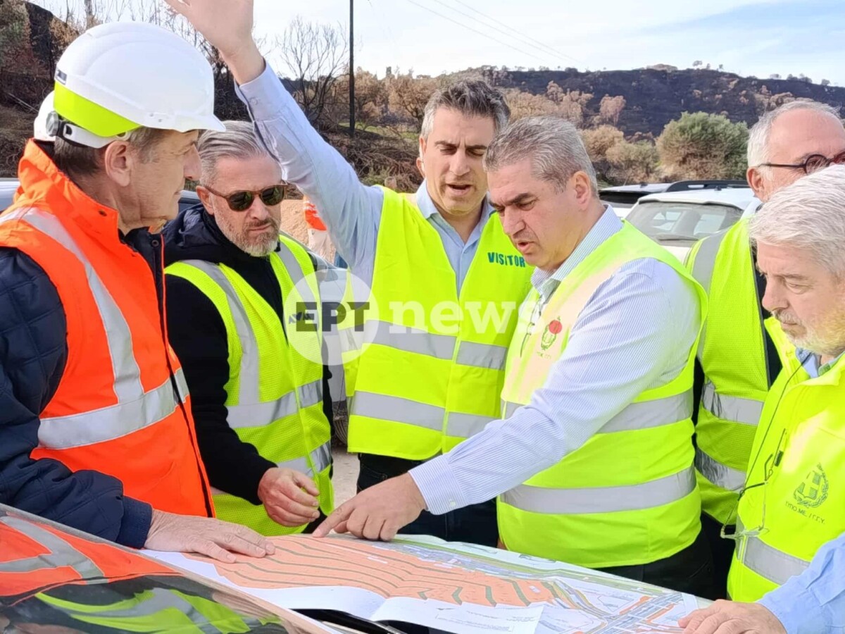 Ο υπουργός Χρίστος Δήμας, ο υφυπουργός Υποδομών Νίκος Ταχιάος και ο γενικός γραμματέας Υποδομών Δημήτρης Αναγνώπουλος βρέθηκαν στον Ριζόμυλο, όπου επισκέφθηκαν εργοτάξιο του έργου, προκειμένου να ενημερωθούν για την πρόοδο των εργασιών από στελέχη του Ομίλου «Aktor», αναδόχου της σύμβασης ΣΔΙΤ.