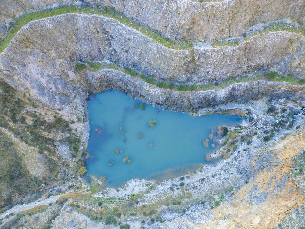 Πριν από πολλά χρόνια σε αυτό το σημείο, λειτουργούσε ένα λατομείο. Αν ερμηνεύσεις σωστά την εικόνα, θα δεις τα σκαμμένα βράχια και τις αναβαθμίδες επάνω τους. Κάποτε όμως το νταμάρι, έπαψε τις εργασίες του σε αυτό το μέρος και μεταφέρθηκε αλλού, αφήνοντας πίσω του ένα λίγο απόκοσμο τοπίο.